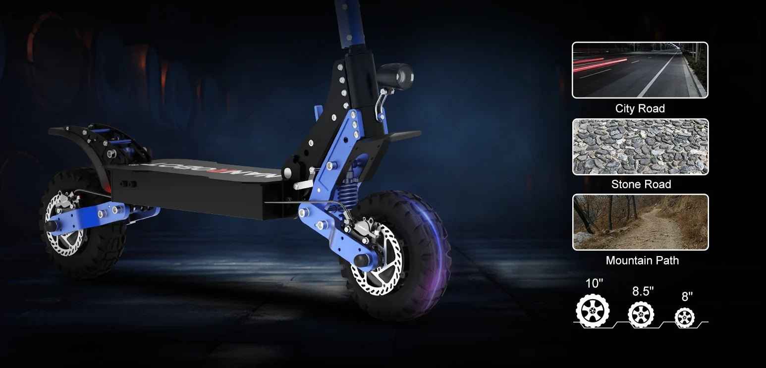 | Tires | 10″ off-road inflatable tires |