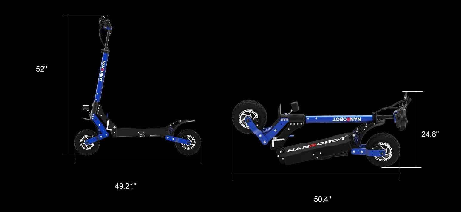 Nanrobot D4+3.0 |Dual motors, 1000 W × 2 (peak power)|52 V, 23.4 Ah lithium prismatic battery (EVE cells)|Up to 40 mph (≈ 64 km/h)|40 miles (on full charge)